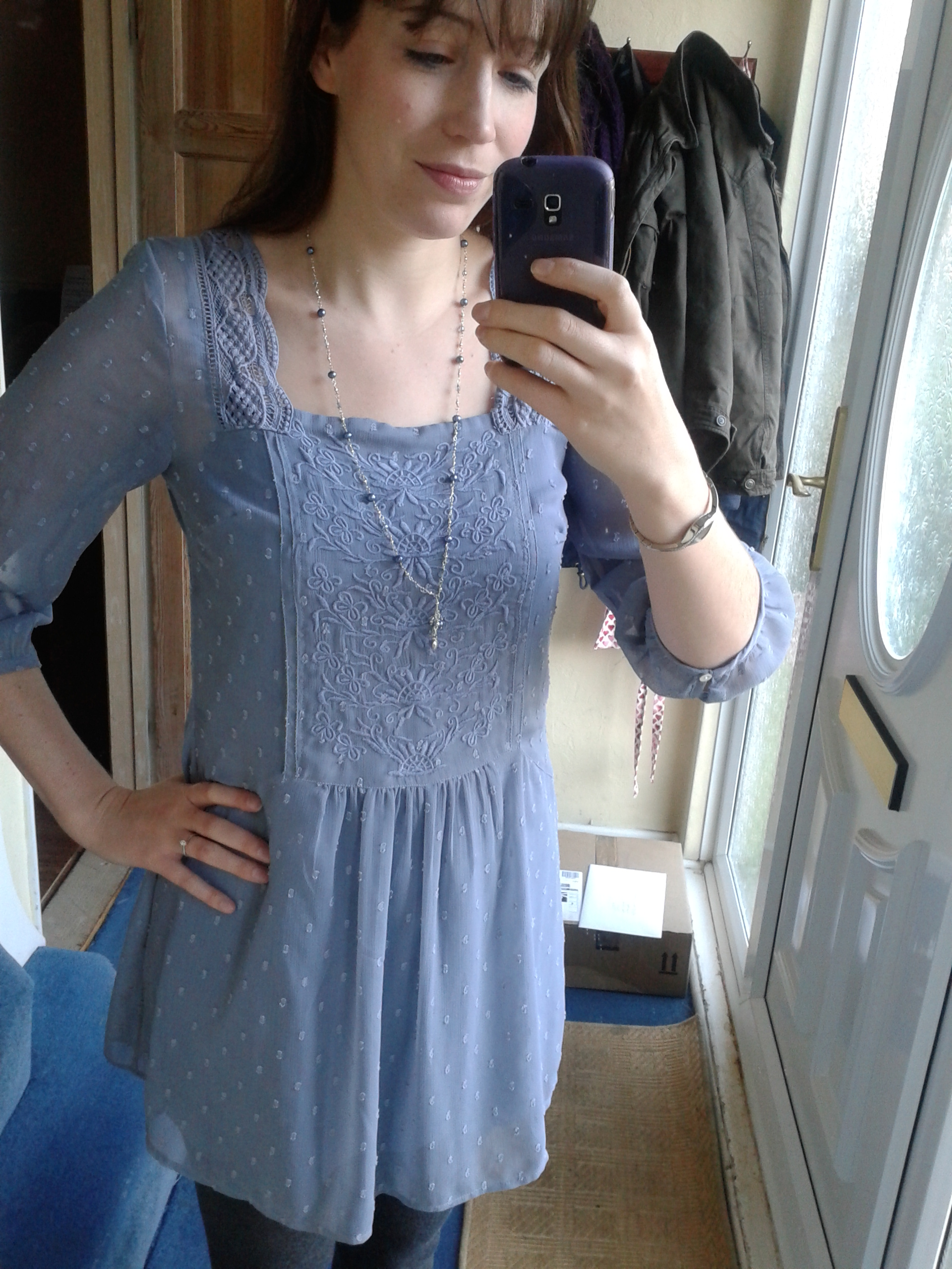 The belt made me feel very uncomfortable. I think it was very unflattering but it matched the shoes. I think I might have disliked the necklace most of all. I still struggle to explain why. I think it looks faintly ridiculous on me and yet I knew that someone else could wear the same outfit and look much better in it (ideally the trousers and shoes and belt would be brown, to match the Spring/Autumn jumper).